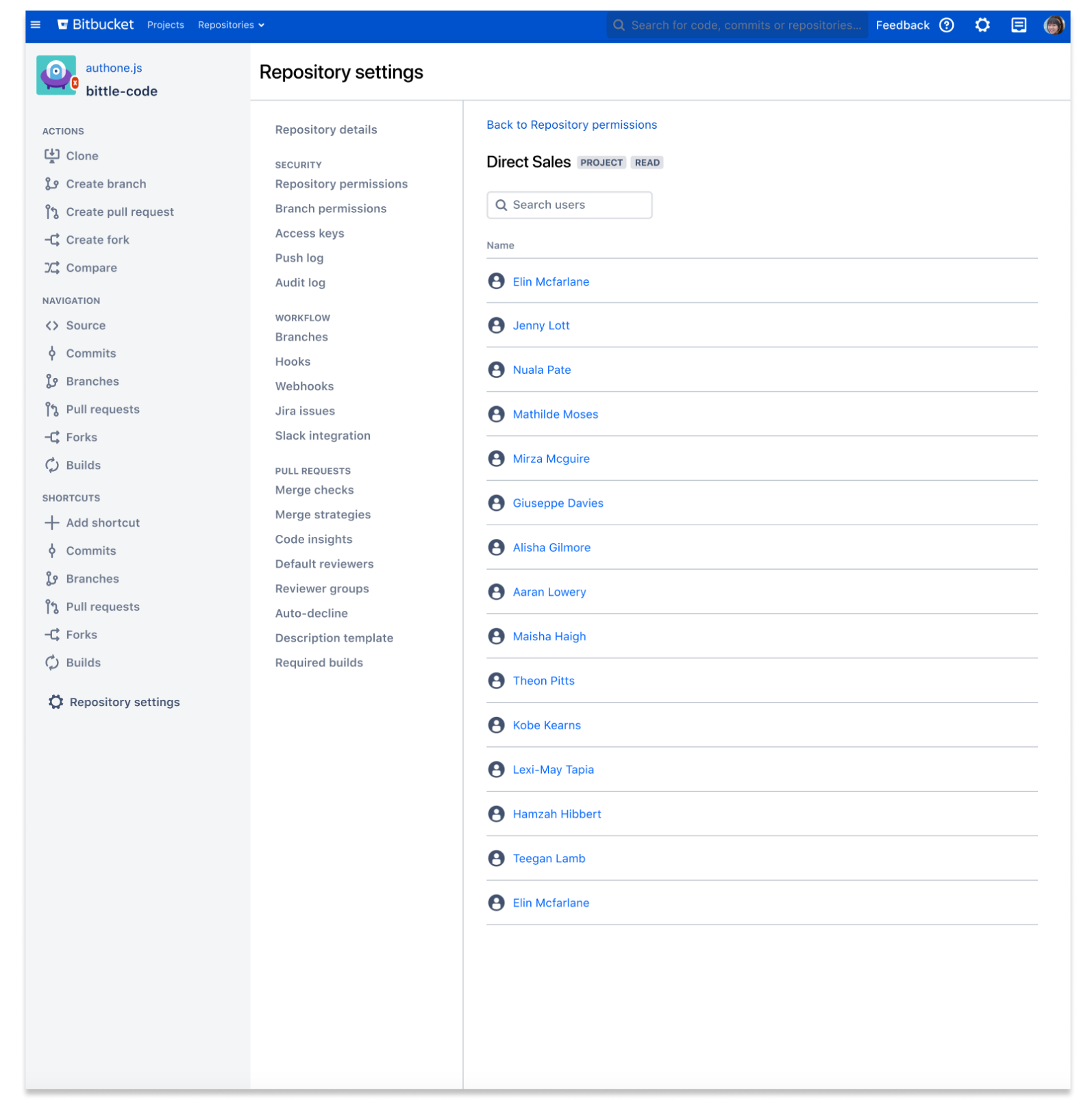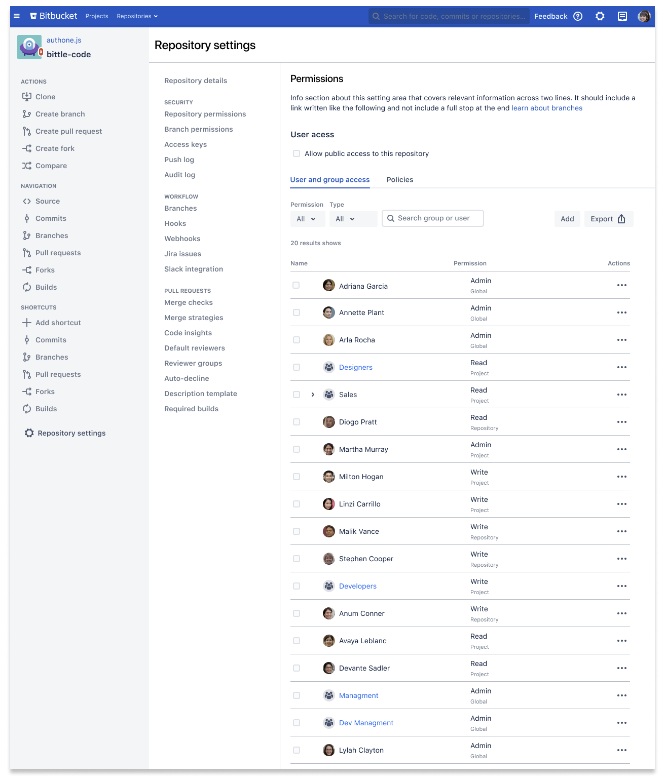 Groups were represented at the top level showing which groups had access. We enabled users to click on a group and drill down to see exactly who was in the group and who had access to their repository/project.