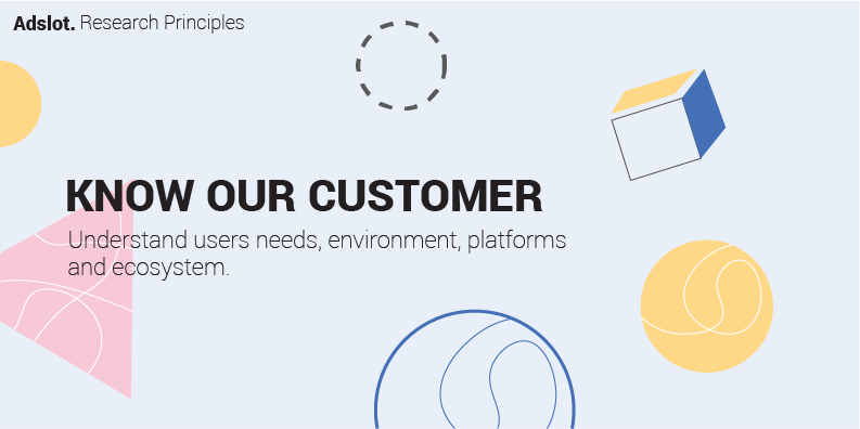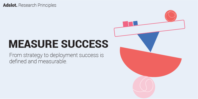 Collaborating with product and design I created the Adslot research principles. These needed to take into account where we are at as a company when using research to inform our design decisions. These will progress and change as research becomes more normalised on projects but to begin with, we needed to promote research in a simple manner encouraging the ease with which we could add research processes to any project.