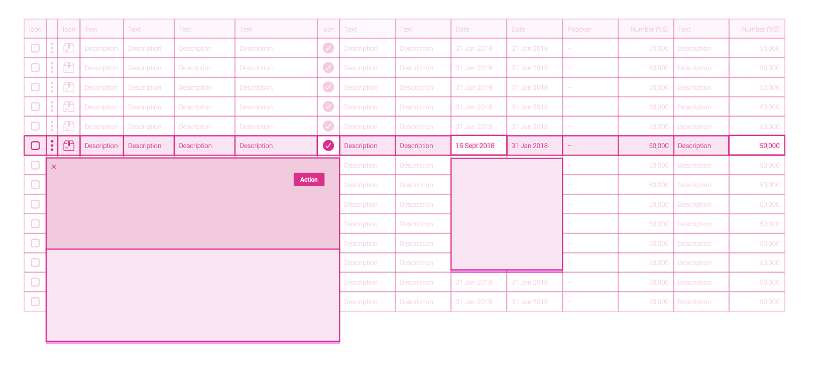 The grid can be thought of as a major component however housed within it are many smaller components that make it work. These smaller components are reusable on different pieces of data allowing users the ability to explore, add, edit and remove data in various forms. They also create a common patterns across any data set meaning once a user familiarises themselves with a tool, they can use it anywhere they want in the platform.
